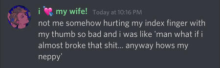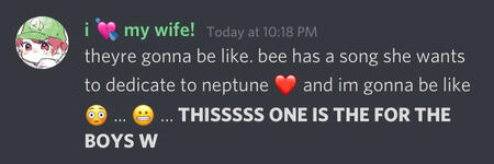 but he really means a lot to me, more than anything. telling people that i love them really doesnt come natural to me, i think? in my family, love is something thats more shown through physical acts such as gifts or picking up something that made you think of them while you were out! so when i joined the gc where i met neptune i did feel a little out of my element. they were all so out loud with their appreciation and love for each other that it kinda took me a while to get used to it.